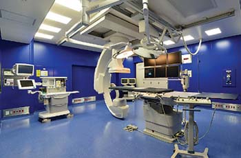 また、ハイブリッド手術室を備え、内視鏡的粘膜下層剥離術を取り入れている等、特に循環器や消化器の専門的な医療において、県内でも先進的な役割を担っています。心臓カテーテル検査は年間2,010例、頻脈性不整脈に対するカテーテルアブレーション治療は年間約500件で県内トップクラスの実績です。