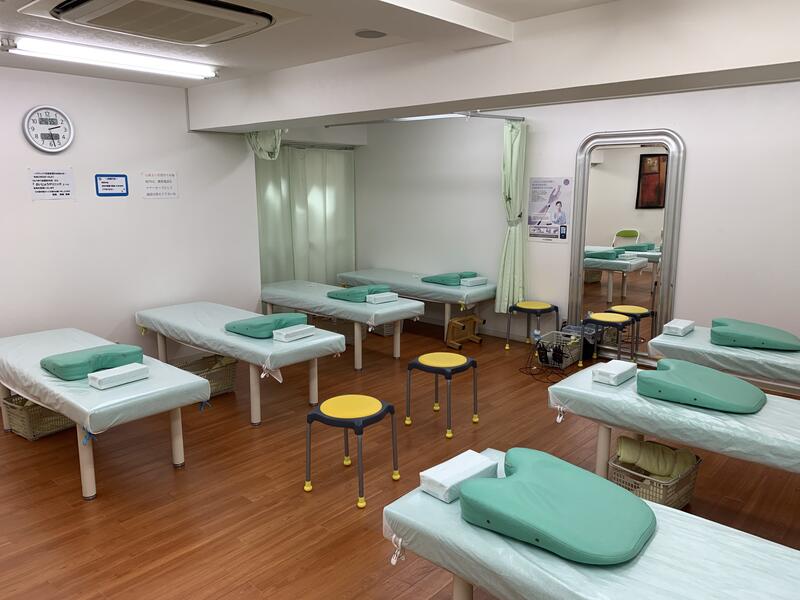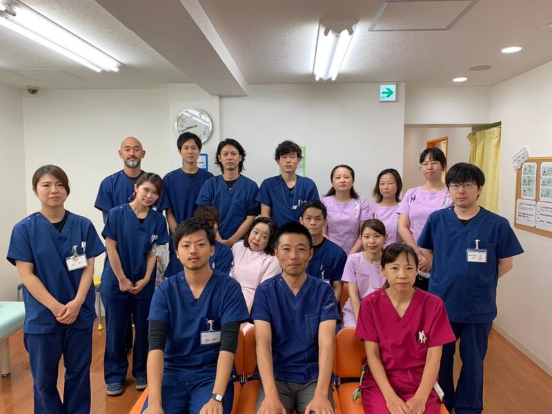 常勤医師1名/放射線技師1名/看護師3名/理学療法士2名/柔道整復師5名/鍼灸師1名/リハ助手4名/受付事務5名 |