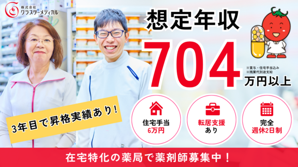 調剤薬局にて薬剤師の募集薬剤師業務全般調剤・監査・投薬OTC販売在宅地域の薬局・ドラッグストアとして、患者様の健康を薬剤師の立場からサポートするお仕事です!ドラッグストアを併設している店舗が多く、患者...