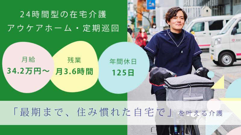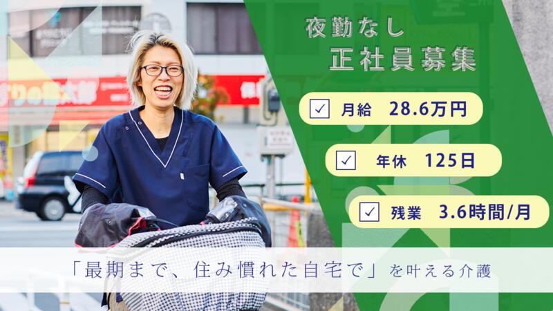 仕事内容 | 電動自転車で1日10~15件ほどのご自宅に伺い、ケアを行います。 自立支援の観点から、ご本人ができることはなるべくご自身でやっていただくことを大切に生活をサポートします。 施設とは違った、自宅ならではの利用者一人ひとりに合うケアを実現できるのが魅力です。 ◾️介護業務 ・身体介護(排泄介助、服薬支援、食事提供、移乗介助) ・生活支援(掃除、洗濯、買物代行、簡単な調理) ・緊急対応(訪問、電話応対)※利用者からのコールは1日5回程度ですが、緊急度の高いコールは年に1、2回ほど ★主は身体介護、状況に応じて生活支援を組み入れることもあります ◾️計画作成責任者業務(介護福祉士をお持ちの方) ・ケアマネジャー/家族/訪問看護などとの連携/調整 ・定期巡回計画書の作成(訪問頻度や介護内容の決定などをケアマネと相談/決定) ・アセスメント(身体的なものに限らず生活面や残りの日々の過ごし方など含む) ★3-4名を担当いただきますが、先輩がしっかりフォローしますので安心してください ◾️リーダー業務 ・メンバーサポート/シフト作成/採用面接 ・ケアマネージャーへの周知/利用者受け入れ相談 ・その他、事業所の運営に関わる業務(経理/労務/行政対応など本部サポートあり) ※まずはメンバー業務を担い、社内規定をクリア後、リーダー就任を想定しています <必須要件> ◎介護現場での実務経験が半年以上ある方 ◎重度身体介助の経験がある方 <応募資格> ◎介護職員実務者研修 修了者 ◎介護福祉士をお持ちの方 <利用者について> 利用者の要介護度は平均3~4程度。ご自身ができることはなるべくご自身でやっていただけるよう、見守りを含めた支援を行っています。例えば、食事介助が不要な方には配下膳のみお手伝いしたり、認知症の症状のある方には服薬・水分補給のみサポートしたりと、ご本人の自立性を尊重しながらケアをしています。 <働き方について> ■ シフトは早番、遅番、夜勤の3交代制 ■ 1人あたり、1日最大10~15件程度の訪問を行います (例えば…利用者Aさんのニーズが朝昼晩の食事介助と排泄介助だった場合、8時、12時、18時ごろの訪問を、各時間のシフトに入っているスタッフで分担するイメージです) ■ スタッフ平均残業は3.6時間/月 ■ スマホを活用し自社開発のシステムから記録作成、情報報告をすることで無駄な事務作業時間を効率化! |
