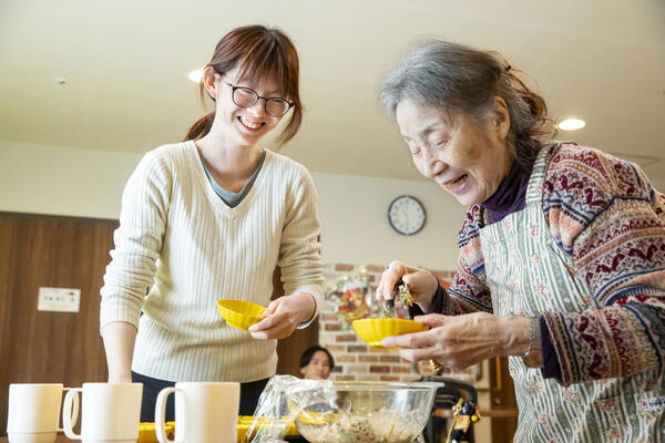 仕事内容 | 【主な業務】 一緒に食事の準備・掃除・洗濯・裁縫など、 ご入居者の出来ないことをお手伝いしながら健康維持や日常生活をサポートします。 1ユニット9名の少人数制の強みを生かし、 タイムスケジュールにしばられすぎずじっくりとご入居者と関わることができます。 おやつ作りや季節の行事など楽しみが多くあります。 【応募資格】 無資格・未経験OK |