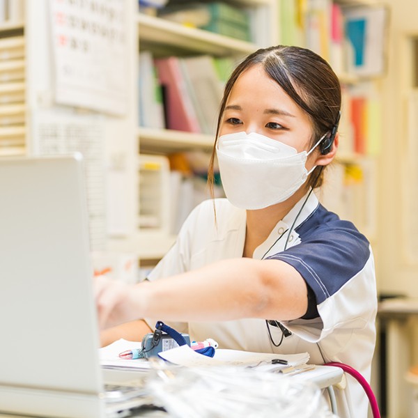 入院病棟で、患者様の検温や状態観察、採血などの検査を行っています。