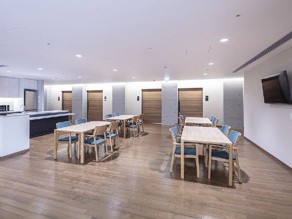 設備等 | 【地上8階建て】 8階:ルーフトップテラス 7階:ユニット型特養(12名×1ユニット) ショート(12名×1ユニット) 6階:ユニット型特養(12名×2ユニット) 5階:ユニット型特養(12名×2ユニット) 4階:ユニット型特養(12名×2ユニット) 3階:ユニット型特養(12名×2ユニット) 2階:認知症グループホーム(9名×2ユニット) 1階:地域交流スペース |
