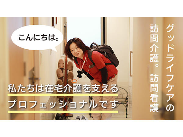 グッドライフケアは、介護が必要な方が一人でも多く自宅で安心して最期を迎えられるよう支援する在宅サービスのプロフェッショナルチームです。介護、看護、居宅、リハビリデイサービス、福祉用具、そして定期巡回・随時対応型訪問介護看護のサービスを提供することにより、多職種が連携し、一貫したサービスを実現しています。