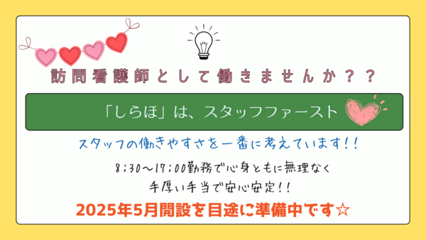 「訪問看護ステーションしらほ」は、2024年4月1日にオープンしました!!