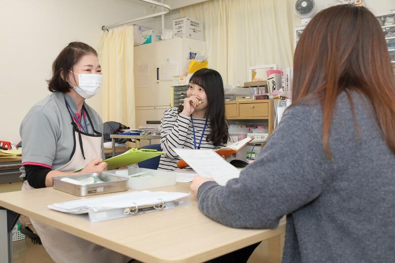 具体的には、利用者様の薬のセットや配薬、痰の吸引、採血や体重測定などです。他には、外部医療機関への通院付添いや内科・精神科の嘱託医への対応もお願いしています。夜勤はありませんが、業務に慣れたらオンコール対応を週1~2回お願いしています。