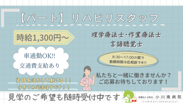 <小美玉市>小川南病院にてリハビリ業務▼患者様へのリハビリテーション業務▼その他、付随する業務など