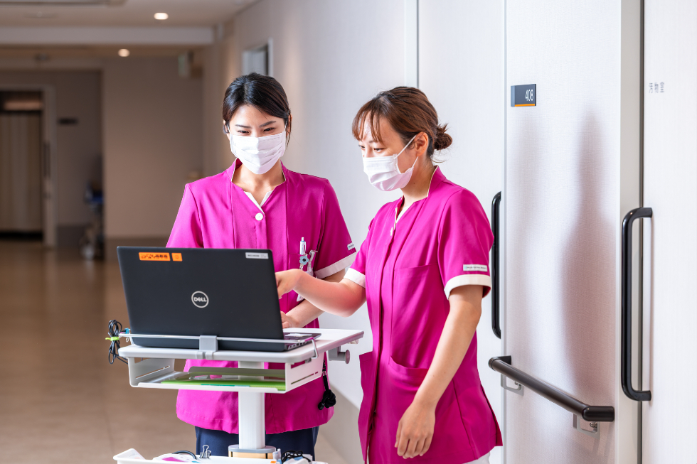 教育係としてメインのプリセプターが配置されます。また、業務習得の進み具合を確認しながら、部署全体でサポートする風土があります。習得状況を部署内で共有できるツールを活用し、同じことを重複して教えたり、教え漏れが出るのを防いでいます。電子カルテの操作も、慣れるまでマンツーマンで指導しますよ。