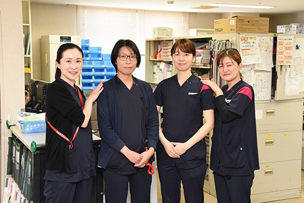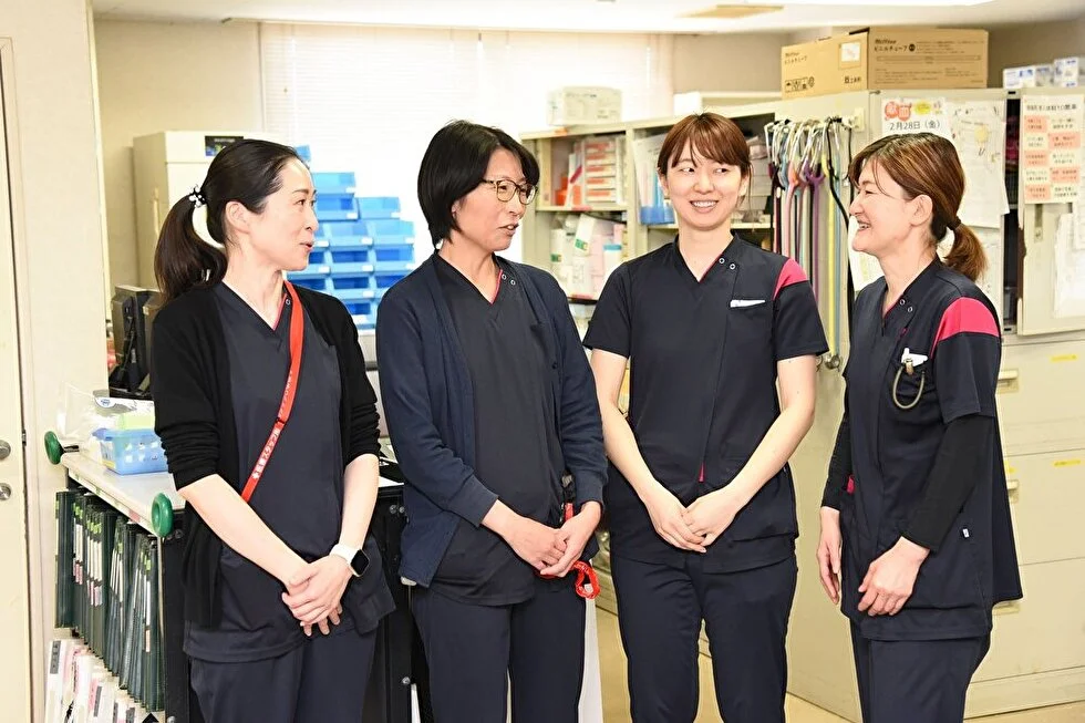 看護師は、病棟配属の場合は入院患者さんの看護にあたりますので、検温、点滴、ナースコール対応など、勤務内容や1日の流れ自体は多くの病院とあまり変わりません。外来の看護師は外来の患者さんの対応、胃カメラや大腸内視鏡など、検査のサポートをします。手術室に興味がある方であれば、手術室にも入ってもらいたいと思います。